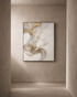 The Venema Oil Painting is a captivating masterpiece that seamlessly combines opulence and sophistication through its use of rich gold and white tones. The artist skillfully employs these luxurious hues to create a visually striking composition that exudes elegance. The painting's abstract elements add a layer of intrigue, inviting viewers to interpret its meaning through their own perspectives. The choice of a black frame serves as a bold contrast, emphasizing the artwork's intricate details and contributing to its overall aesthetic appeal.